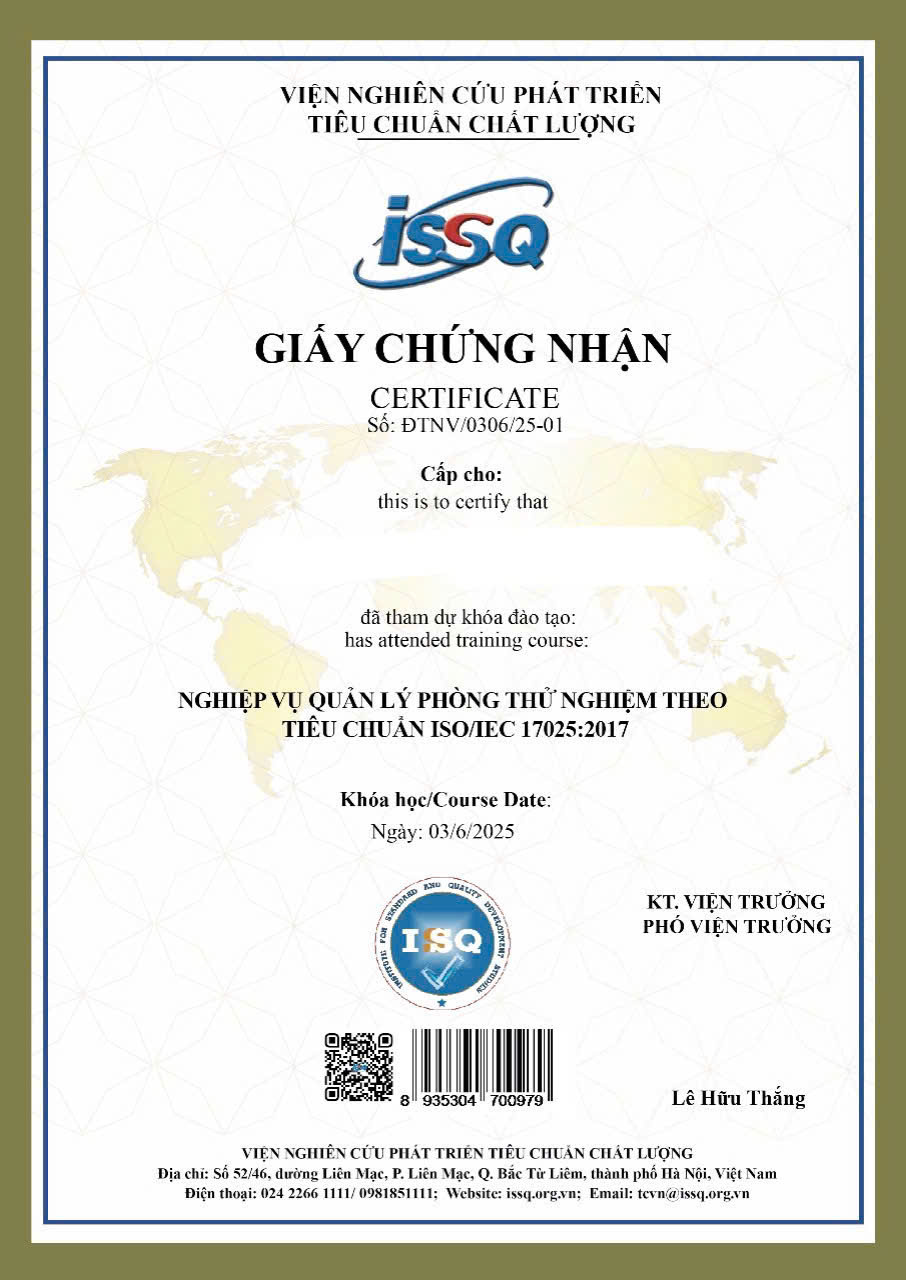 Mẫu giấy chứng nhận đào tạo ISO/IEC 17025:2017