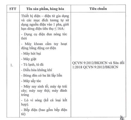 Quy chuẩn kỹ thuật quốc gia QCVN 9:2012/BKHCN về tương thích điện từ (EMC) đối với các thiết bị điện và điện tử gia dụng và các mục đích tương tự được ban hành theo Thông tư số 11/2012/TT-BKHCN ngày 12 tháng 4 năm 2012 của Bộ trưởng Bộ Khoa học và Công nghệ.