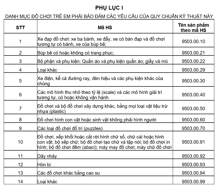 Quy chuẩn kỹ thuật QCVN 3:2019/BKHCN quy định các yêu cầu an toàn đối với đồ chơi trẻ em, các phương pháp thử tương ứng và yêu cầu về quản lý chất lượng đồ chơi trẻ em sản xuất trong nước, nhập khẩu và lưu thông trên thị trường.