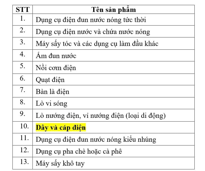 Danh mục các thiết bị điện - điện tử cần đảm bảo yêu cầu về an toàn dựa trên chứng nhận QCVN 4:2009/BKHCN.