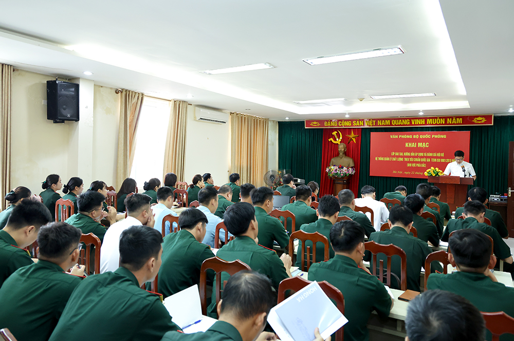 Phát biểu khai mạc lớp đào tạo, Thiếu tướng Lê Văn Dũng, Phó chánh Văn phòng Bộ Quốc phòng (BQP) cho biết: Thời gian qua, BQP rất quan tâm, coi trọng thúc đẩy việc áp dụng Hệ thống quản lý chất lượng theo tiêu chuẩn ISO trong giải quyết thủ tục hành chính và công việc nội bộ tại các cơ quan, đơn vị, góp phần nâng cao hiệu quả trong thực hiện các mục tiêu cải cách hành chính, tạo sự nhất quán trong công việc, chuẩn hóa các quy trình hoạt động, xử lý nghiệp vụ, cắt giảm các thủ tục không cần thiết và cải tiến phương pháp làm việc. Đến nay, BQP đã triển khai áp dụng Hệ thống quản lý chất lượng đối với 626 cơ quan, đơn vị trong toàn quân.